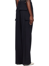 Wide-leg plain-woven wool cargo pants. · Belt loops · Adjustable press-stud tabs at waistband · Four-pocket styling · Zip fly · Cargo pocket at outseams Supplier color: Midnight blue Body: 100% wool. Lining: 100% cotton. Made in Italy 251798F087000