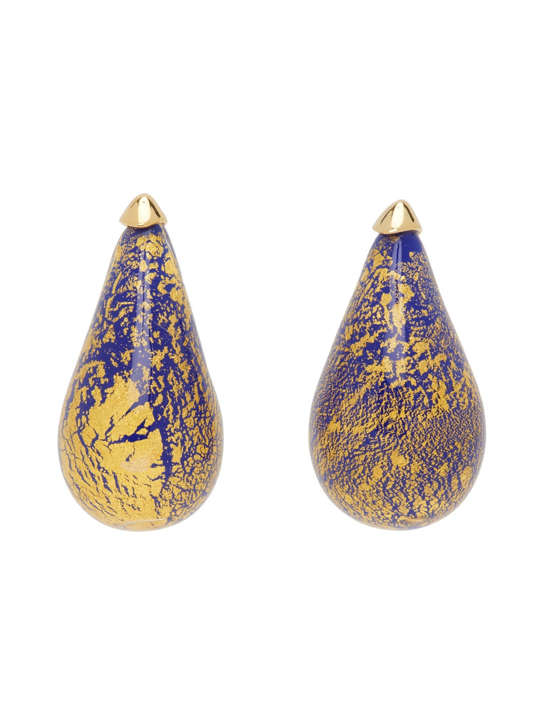 Pair of glass drop earrings in navy and gold tone. · Post-stud fastening · 18k gold-plated sterling silver hardware · H1.5" x W0.75" Supplier color: Midnight blue/Gold 18k gold, 925 sterling silver, glass. Made in Italy 242798F022022