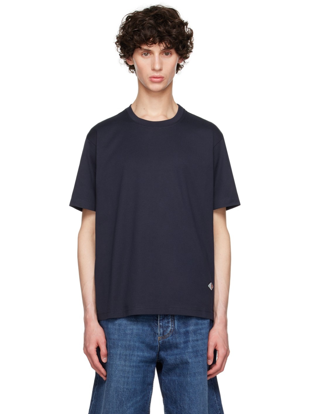 Lightweight cotton jersey T-shirt. · Rib knit crewneck · Embroidered logo patch at hem · Dropped shoulders Supplier color: Navy Body: 100% cotton. Trim: 98% cotton, 2% elastane. Made in Italy 242798M213004