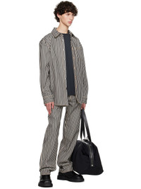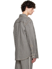 Cotton drill shirt. Stripes throughout. · Spread collar · Button closure · Loop at patch pocket · Shirttail hem · Single-button barrel cuffs · Contrast stitching in tan Supplier color: Navy/Ecru 100% cotton. Made in Italy 242798M192000