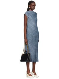 Plain-woven viscose- and silk-blend dress. Trompe l'œil graphic printed throughout. · Cowl neck · Gathering and button closure at back · Central vent at back hem · Contrast stitching in tan Supplier color: Navy/White 92% viscose, 8% silk. Made in Italy 241798F054003