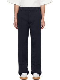 Straight-leg wool grain de poudre trousers. · Belt loops · Four-pocket styling · Zip-fly · Central creases at front and back · Panel at front legs · Darts at back waist Supplier color: Eclipse Body: 100% wool. Lining: 100% cotton. Made in Italy 251798M191002