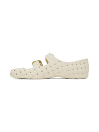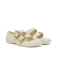 Intreccio-embossed rubber Mary Jane-style ballerina flats in off-white. · Cutouts throughout · Pin-buckle straps at vamp · Treaded rubber sole · Logo-engraved gold-tone hardware Supplier color: Sea salt Rubber. Made in Italy 242798F124002