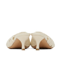 Intrecciato-woven grained lambskin mules in off-white. · Open toe · Twisted detailing at vamp · Logo embossed at padded leather footbed · Covered kitten heel with rubber injection · Leather sole with rubber injections · Heel: H2.25" Supplier color: Sea salt Upper: lambskin. Sole: leather, rubber. Made in Italy 242798F125000