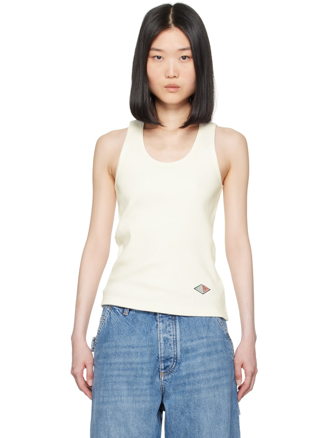 Stretch cotton ribbed jersey tank top. · Scoop neck · Logo patch at front Supplier color: Chalk 93% cotton, 7% elastane. Made in Italy 242798F111000