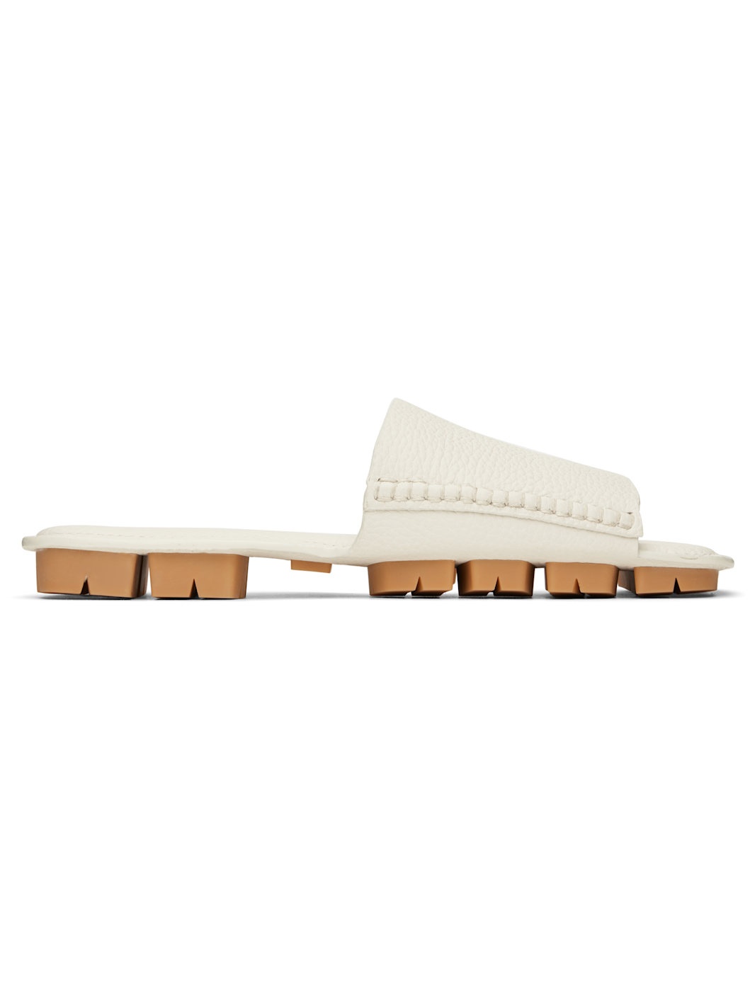 Grained calfskin sandals in off-white. · Open square toe · Logo embossed at footbed · Treaded rubber sole Supplier color: String Upper: calfskin. Sole: rubber. Made in Italy 242798M234004