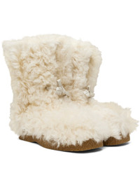 Calf-high shearling boots in off-white. · Square toe · Intreccio-woven bow applique at vamp · Grained leather lining · Crepe rubber platform sole · Platform: H1.5" Supplier color: Popcorn Upper: lambskin. Sole: rubber. Made in Italy 251798M223000