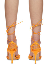 Cotton mesh heels in orange. Lambskin trim throughout. · Square toe · Wraparound self-tie strap at vamp and ankle · Logo stamped at beige lambskin footbed · Covered stiletto heel · Leather outsole in beige with rubber injections · Heel: H3.5 in Supplier color: Tangerine Upper: lambskin, textile. Sole: leather, rubber. Made in Italy 221798F122003