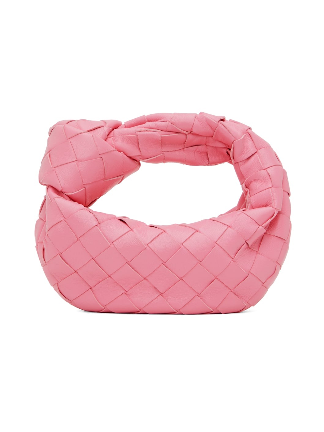 Intrecciato-woven grained lambskin top handle bag in pink. · Knotted accent at integrated carry handle · Zip closure · Buffed lambskin lining · H2.75" x W6.5" · Total height: H6" Supplier color: Ribbon/Gold 100% lambskin. Made in Italy 241798F046000