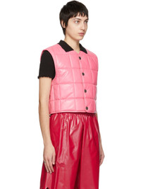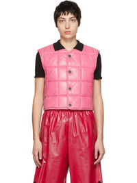 Sleeveless insulated quilted grained lambskin vest in pink. · Crewneck collar · Button closure · Silver-tone hardware Supplier color: Bubble gum Body: 100% lambskin. Fill: 100% polyester. Made in Italy 221798F068000