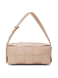 Intreccio-woven buffed lambskin shoulder bag in pink. · Adjustable shoulder strap · Zip closure · Zip pocket at interior · Gold-tone hardware · H3.5" x W9" x D3.5" Supplier color: Lotus/Gold 100% lambskin. Made in Italy 241798F048030