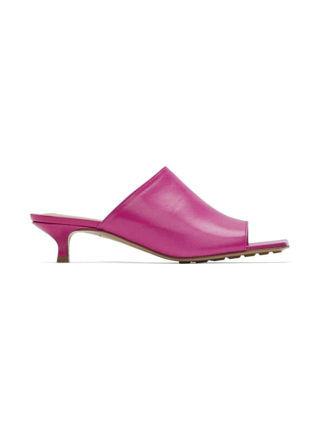 Nappa lambskin heeled sandals in pink. · Open square toe · Kidskin lining · Covered kitten heel · Leather sole with rubber injections · Heel: H1.5 in Supplier color: Hollyhock Upper: lambskin. Sole: leather, rubber. Made in Italy 221798F125032