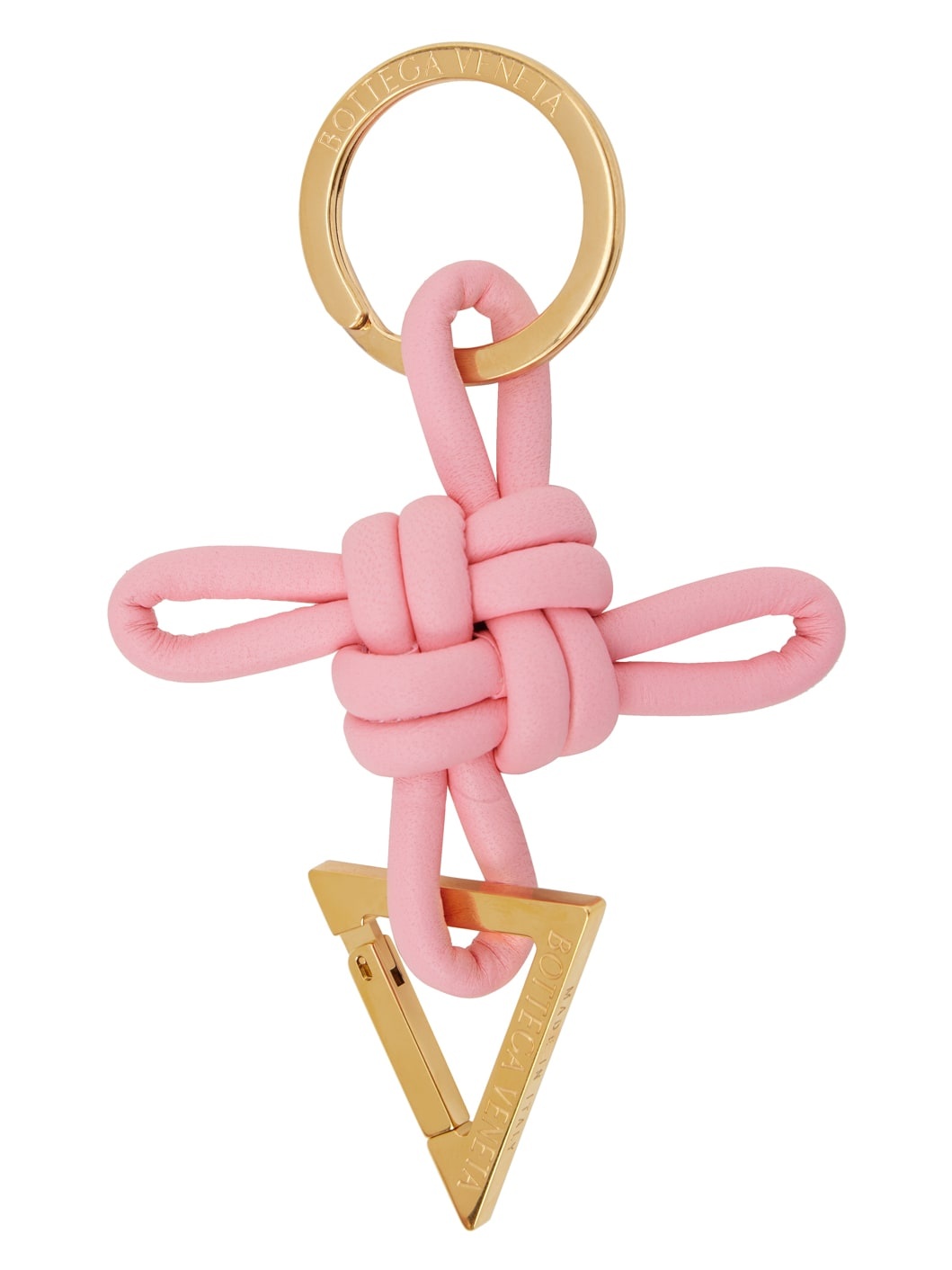 Braided nappa lambskin keychain in pink. · Lanyard clasp and keyring at ends · Logo-engraved gold-tone hardware · H4.5" x W3" Supplier color: Ribbon/Gold Lambskin, metal. Made in Italy 241798F025004