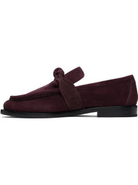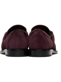 Goatskin suede loafers in purple. · Moc toe · Knotted strap at vamp · Topstitching at welt · Buffed calfskin lining · Stacked leather heel with rubber injection · Leather sole Supplier color: Dark barolo Upper: goatskin, calfskin. Sole: leather. Made in Italy 242798F121012