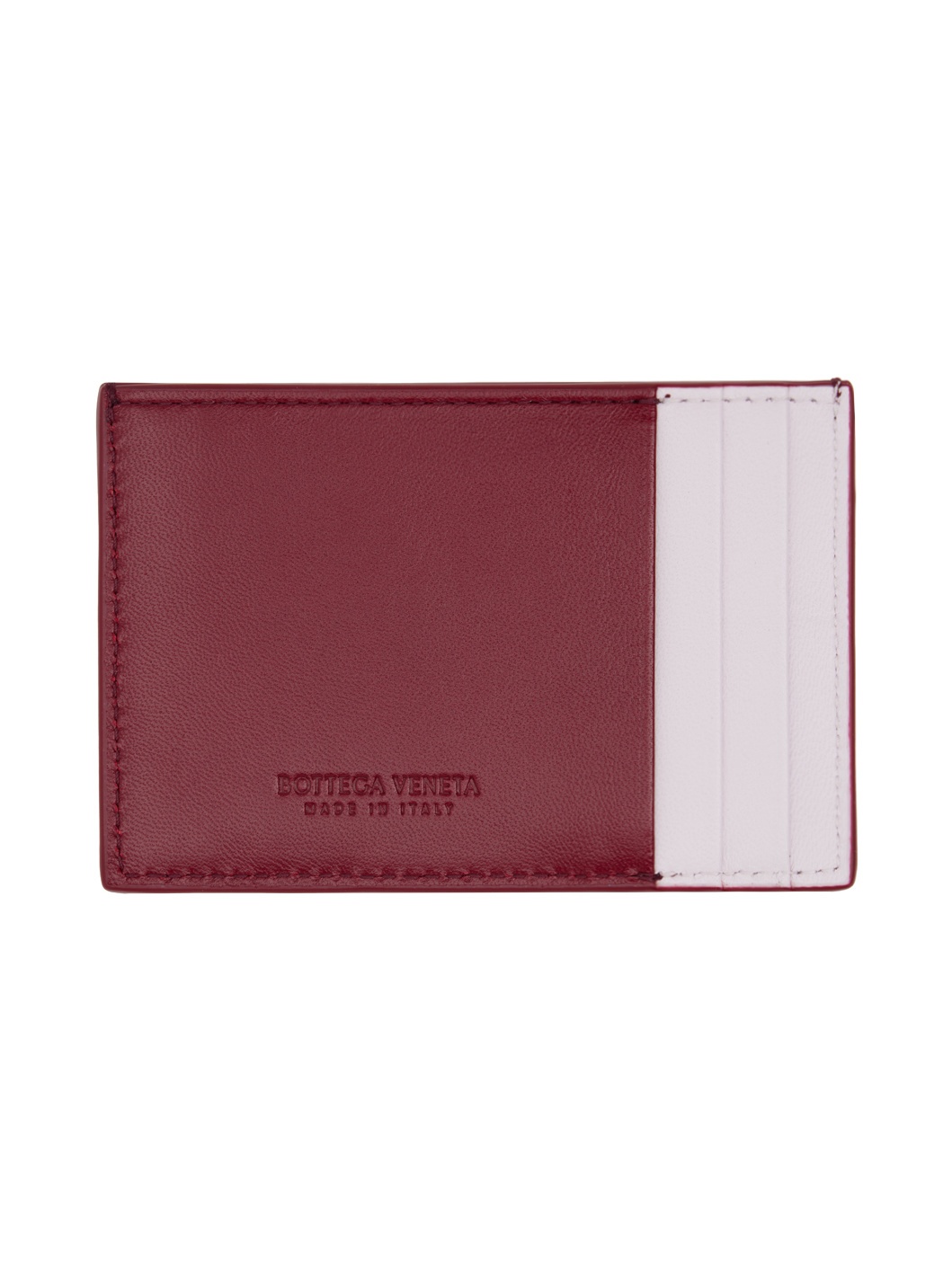 Intreccio-woven buffed lambskin card holder in red. · Logo embossed at back face · Three card slots · Central note slot · Canvas and grained calfskin lining · H4.5" x W3" Supplier color: Red Lambskin. Made in Italy 242798F037010