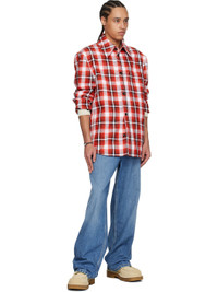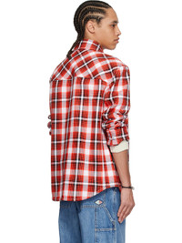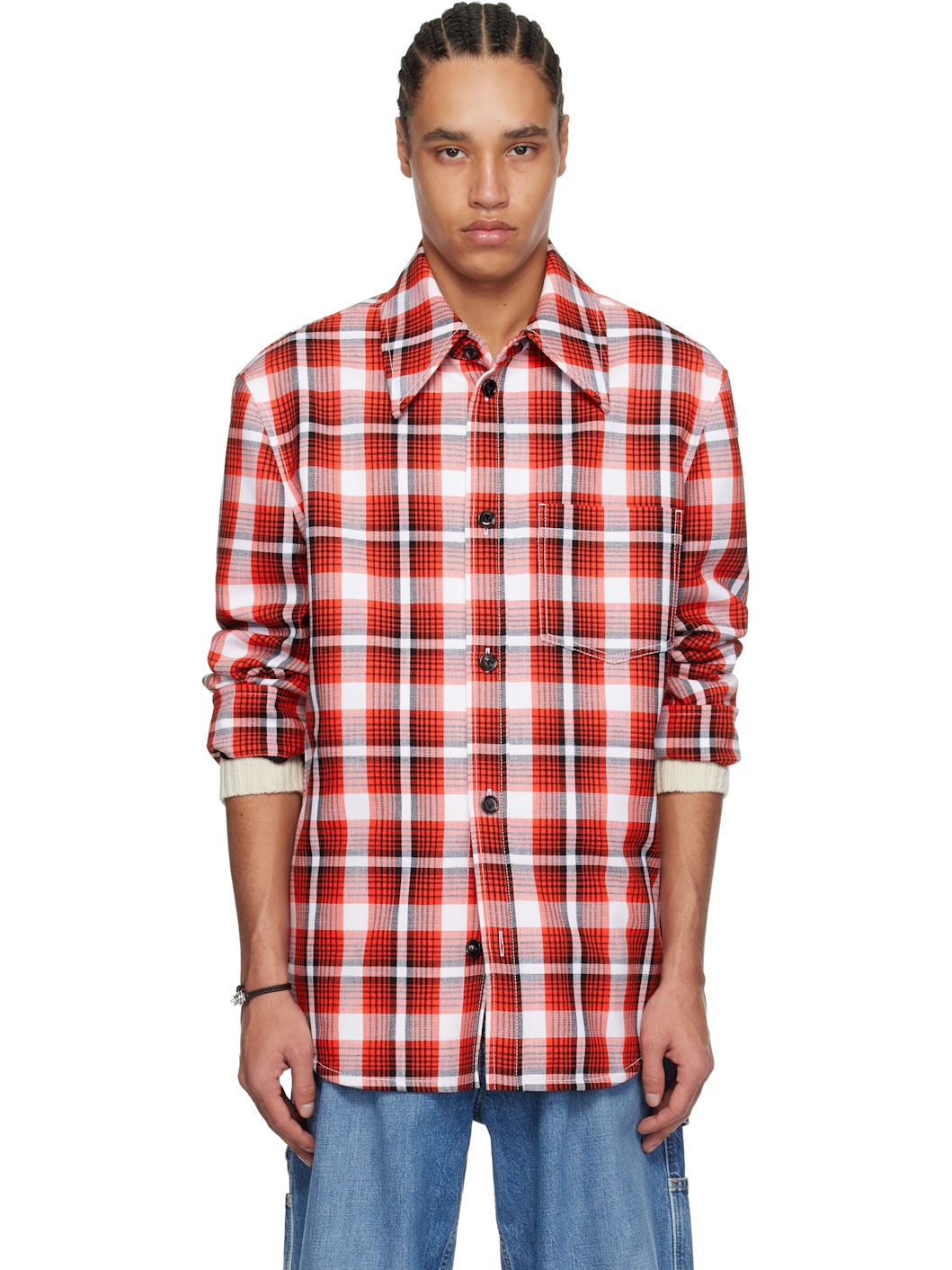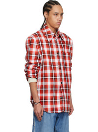 Lightweight plain-woven cotton- and viscose-blend jacket. Check pattern throughout. · Spread collar · Button closure · Patch pocket · Shirttail hem · Buttoned barrel cuffs · Welt pocket at interior · Partial satin lining · Contrast stitching in white Supplier color: Tomato/Chalk/Black Body: 47% cotton, 47% viscose, 6% polyamide. Lining: 100% viscose. Made in Italy 251798M192011