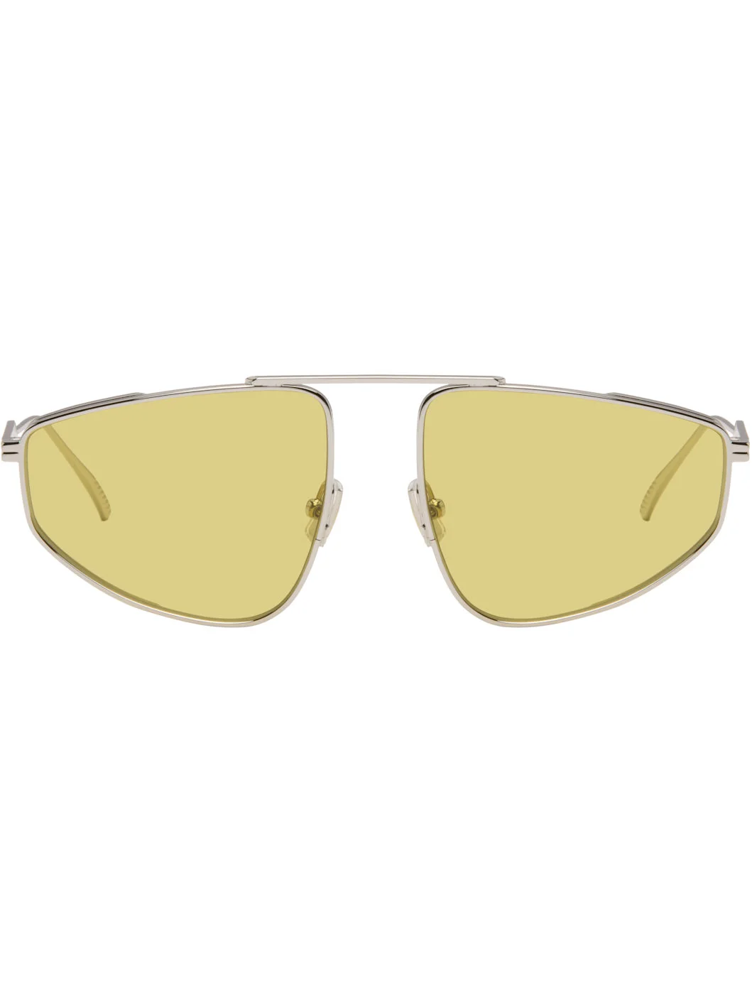 Aviator-style metal-frame sunglasses. · Yellow lenses · Adjustable rubber nose pads · Logo engraved at temples · Includes case · Size: 59.18 140 Supplier color: Silver/Silver/Yellow Metal. Made in Italy 261798F005030