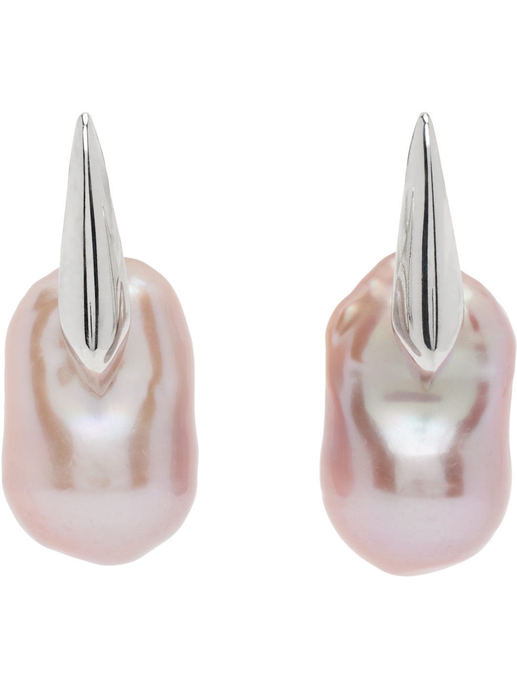 Pair of drop earrings in sterling silver. · Baroque freshwater pearl in pink · Post-stud fatening · H1" x W0.5" Supplier color: Natural pink 925 sterling silver, pearl. Made in Italy 251798F022006