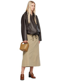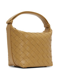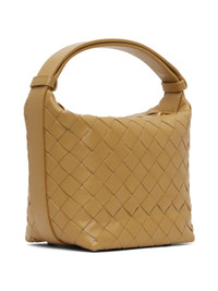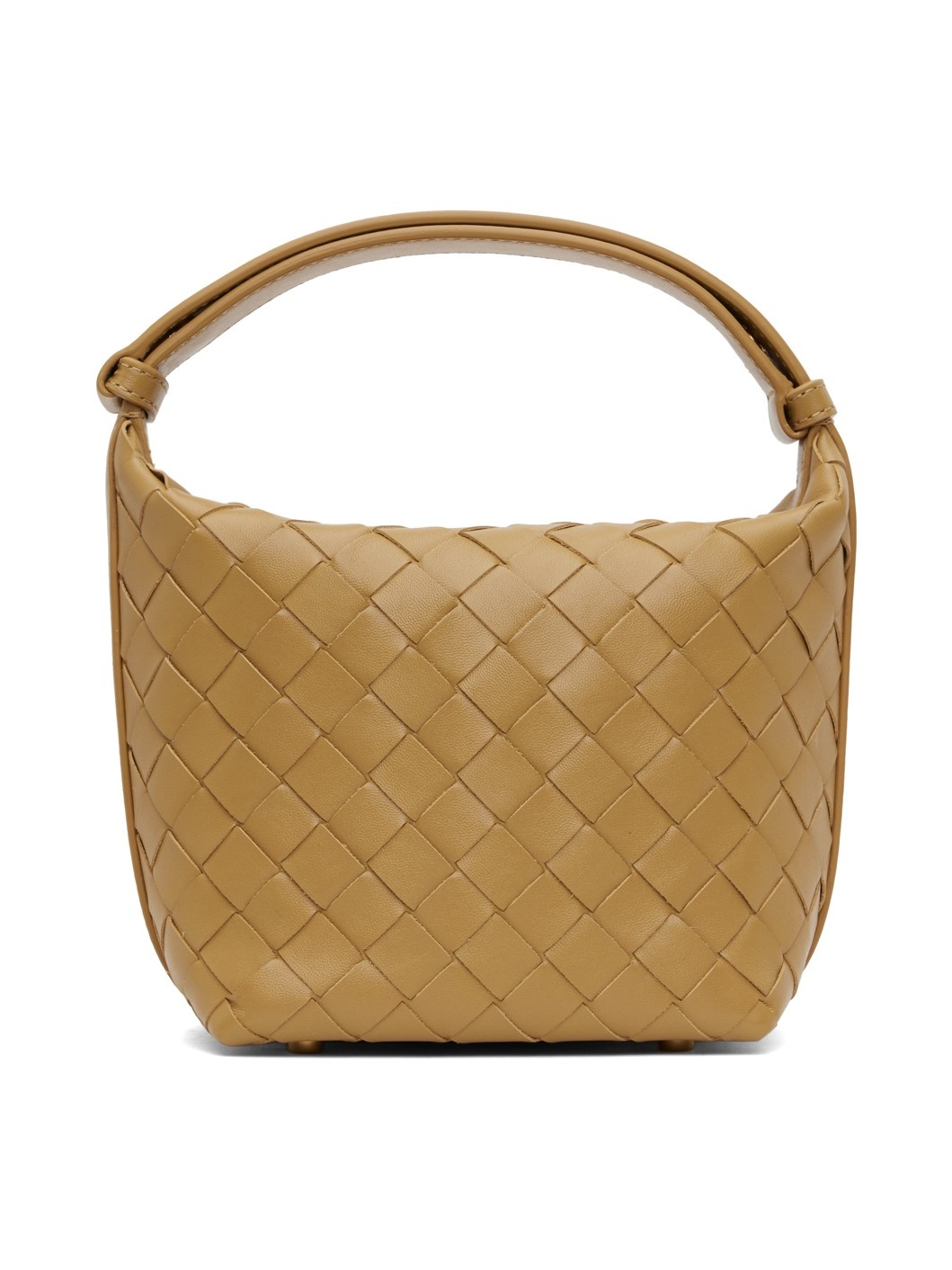 Intrecciato-woven grained calfskin shoulder bag in tan. · Adjustable shoulder strap · Bumper studs at base · Zip closure · Buffed calfskin lining · Gold-tone hardware · H6.75" x W8" x D4.5" Supplier color: Dark praline Calfskin. Made in Italy 242798F046013