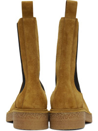 Mid-calf calfskin suede Chelsea boots in tan. · Square toe · Elasticized gusset at sides · Pull-loop at collar · Grained calfskin lining · Crepe rubber sole · Heel: H2" Supplier color: Cork Upper: calfskin. Sole: rubber. Made in Italy 242798M223001