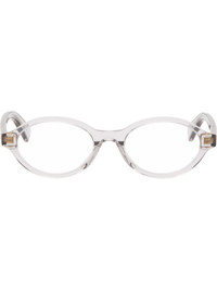Oval transparent acetate-frame optical glasses. · Integrated nose pads · Inset logo hardware at temples · Logo etched at temple · Exposed core wires · Gold-tone hardware · Includes case · Size: 50.19 145 Supplier color: Grey Acetate. Made in Italy 252798F004001