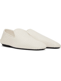Basket-woven buffed lambskin slippers in white. · Square toe · Collapsible heel · Logo patch at footbed · Suede lining · Leather sole with rubber injection Supplier color: String Upper: lambskin. Sole: leather, rubber. Made in Italy 251798F121001