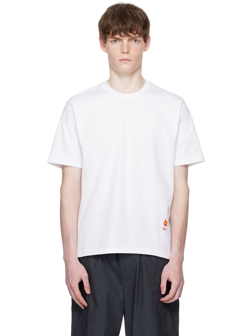 Pima cotton jersey T-shirt. · Rib-knit crewneck · Logo graphic embroidered at front hem Supplier color: White Body: 100% cotton. Trim 1: 97% cotton, 3% elastane. Trim 2: 100% polyester. Made in Italy 251798M213009