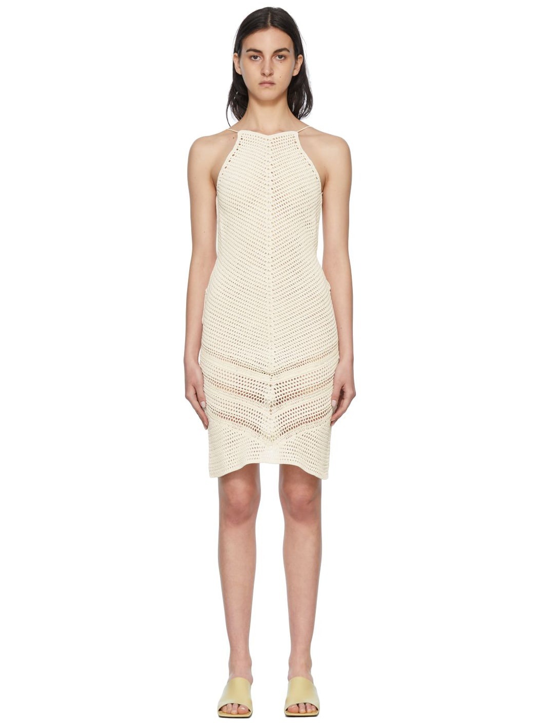 Crocheted stretch cotton and nylon-blend dress. Open hand-crocheted chevron pattern throughout. · Self-tie shoulder straps · Low back · Unlined Supplier color: String 63% cotton, 36% polyamide, 1% elastane. Made in Italy 221798F052000