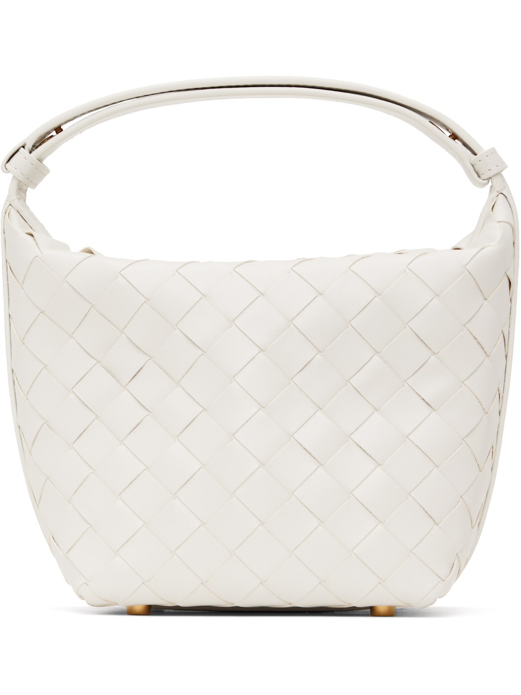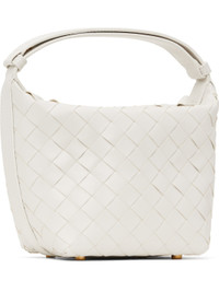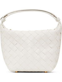 Intrecciato-woven grained calfskin shoulder bag in white. · Adjustable post-stud shoulder strap · Bumper studs at base · Zip closure · Buffed calfskin lining · Gold-tone hardware · H6.75" x W8" x D4.5" Supplier color: White/Gold Calfskin. Made in Italy 251798F048020