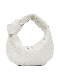 Intrecciato-woven grained lambskin and calfskin top handle bag in white. · Integrated carry handle with knotted detailing · Zip closure · Tonal leather lining · Gold·-tone hardware · H8 x W10 x D3 in Supplier color: White Lambskin, calfskin. Made in Italy 221798F046005