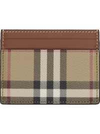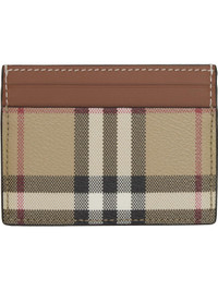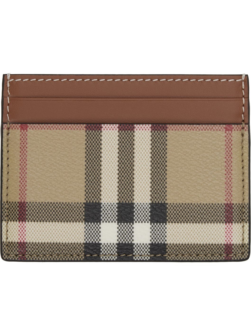 Grained and buffed faux-leather card holder in beige and brown. · Check pattern and hand-painted edges throughout · Four card slots · Central note slot · Canvas lining · Contrast stitching in white · H3" x W4" Supplier color: Archive beige Body: 55% polyurethane, 25% polyester, 20% cotton. Trim: 100% calfskin. Lining: 100% viscose. Made in Italy 252376F037001