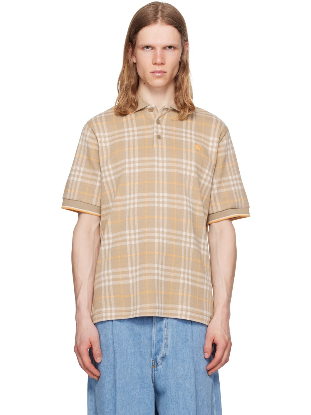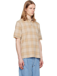 Knit cotton polo. Check pattern throughout. · Striped rib-knit spread collar and cuffs · Three-button placket · Logo graphic embroidered at chest · Tennis-tail hem Supplier color: Broom Body: 100% cotton. Trim: 97% cotton, 3% elastane. Made in Portugal 252376M212007