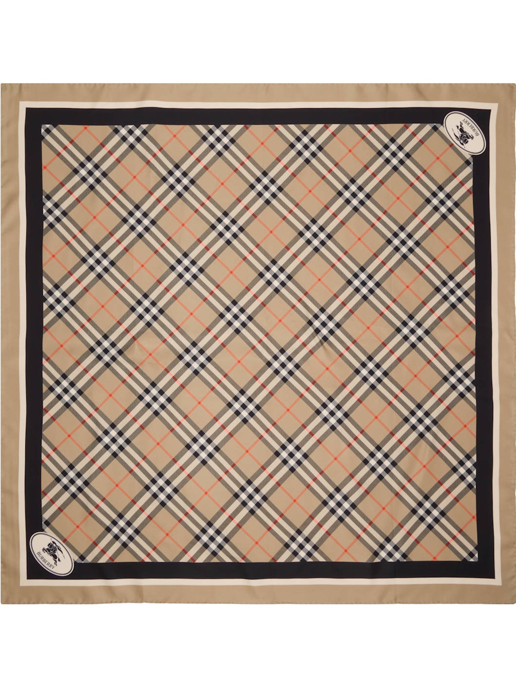 Square silk twill scarf. · Check pattern throughout · Logo printed at face · L35.5" x W35.5" Supplier color: Sand 100% silk. Made in Italy 252376F029002