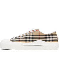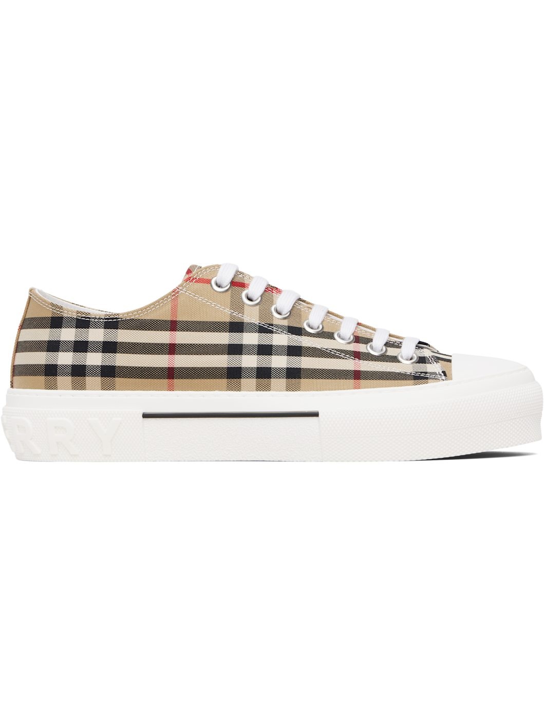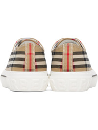Low-top cotton canvas sneakers in beige. · Check pattern throughout · Rubber cap toe · Lace-up closure · Logo printed at tongue · Twill and goatskin suede lining · Logo embossed at heel · Treaded rubber sole · Contrast stitching in white Supplier color: Archive beige Upper: textile, goatskin. Sole: rubber. Made in Italy 252376M237003