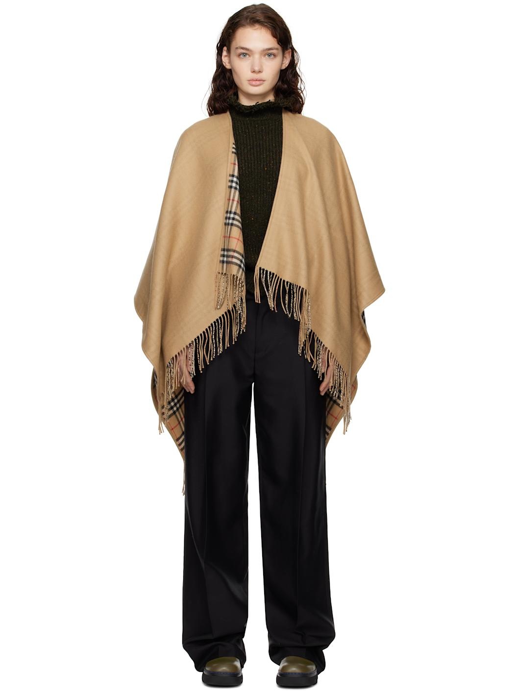 Reversible wool flannel cape-style coat. Reverse in beige wool flannel. Check pattern throughout. · Open front · Fringed detailing at hem Supplier color: Archive beige 100% wool. Made in United Kingdom 251376F059001