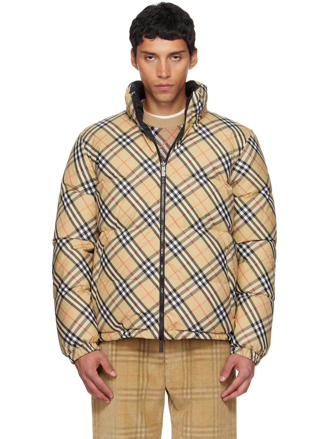 Stretch wool-blend sweater. · Intarsia check pattern throughout · Rib-knit crewneck, hem, and cuffs Supplier color: Sand ip check 92% wool, 8% polyester, 6% polyamide, 1% elastane. Made in Romania 252376M201004