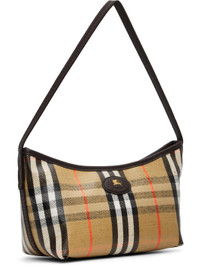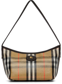 Coated canvas shoulder bag. · Check pattern throughout · Fixed shoulder strap · Leather logo patch at face · Zip closure · Twill lining · H6.5" x W11" x D4.75" Supplier color: Sand Textile, leather. Made in Moldova 252376F048009