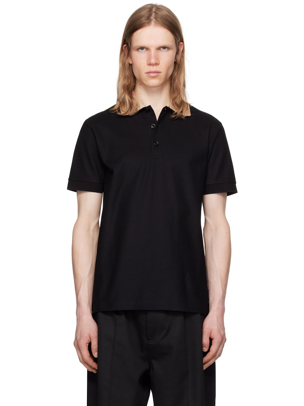 Black Check Collar Cotton Polo