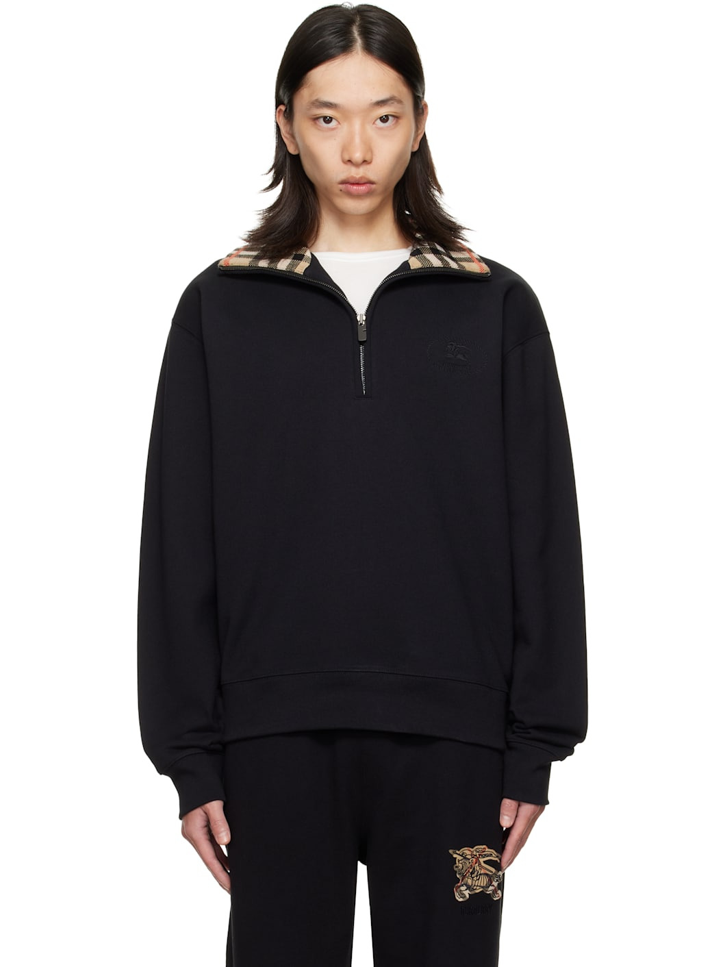 Heavyweight thermal cotton terry sweatshirt. · Rib-knit stand collar with concealed check pattern · Half-zip closure · Embroidered logo at chest · Rib-knit cuffs and hem Supplier color: Black 100% cotton. Made in Portugal 252376M212009