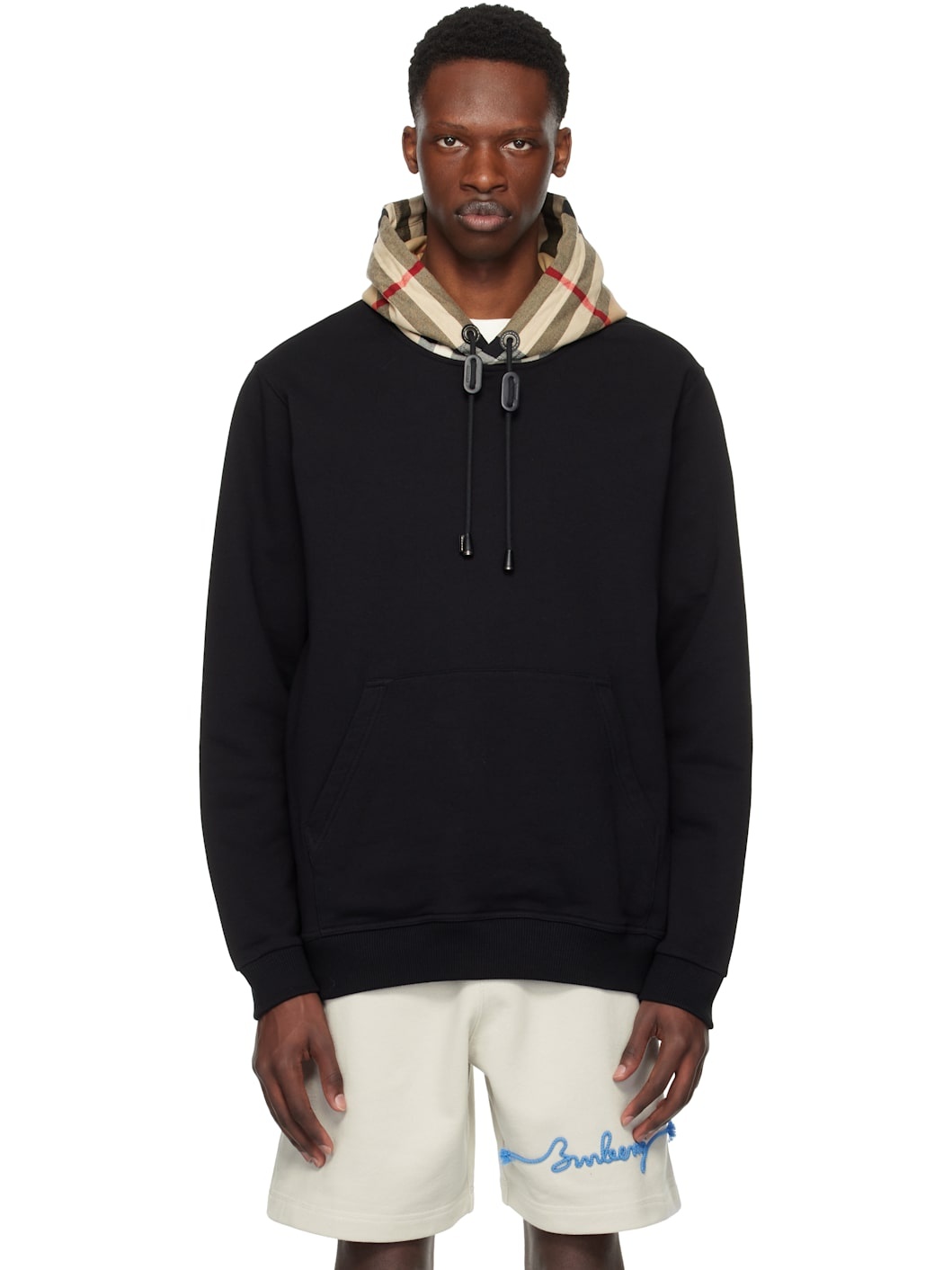 French terry hoodie. · Check pattern and cord-lock drawstring at hood · Kangaroo pocket · Rib-knit hem and cuffs Supplier color: Black Body: 100% cotton. Trim: 98% cotton, 2% elastane. Made in Portugal 252376M202008