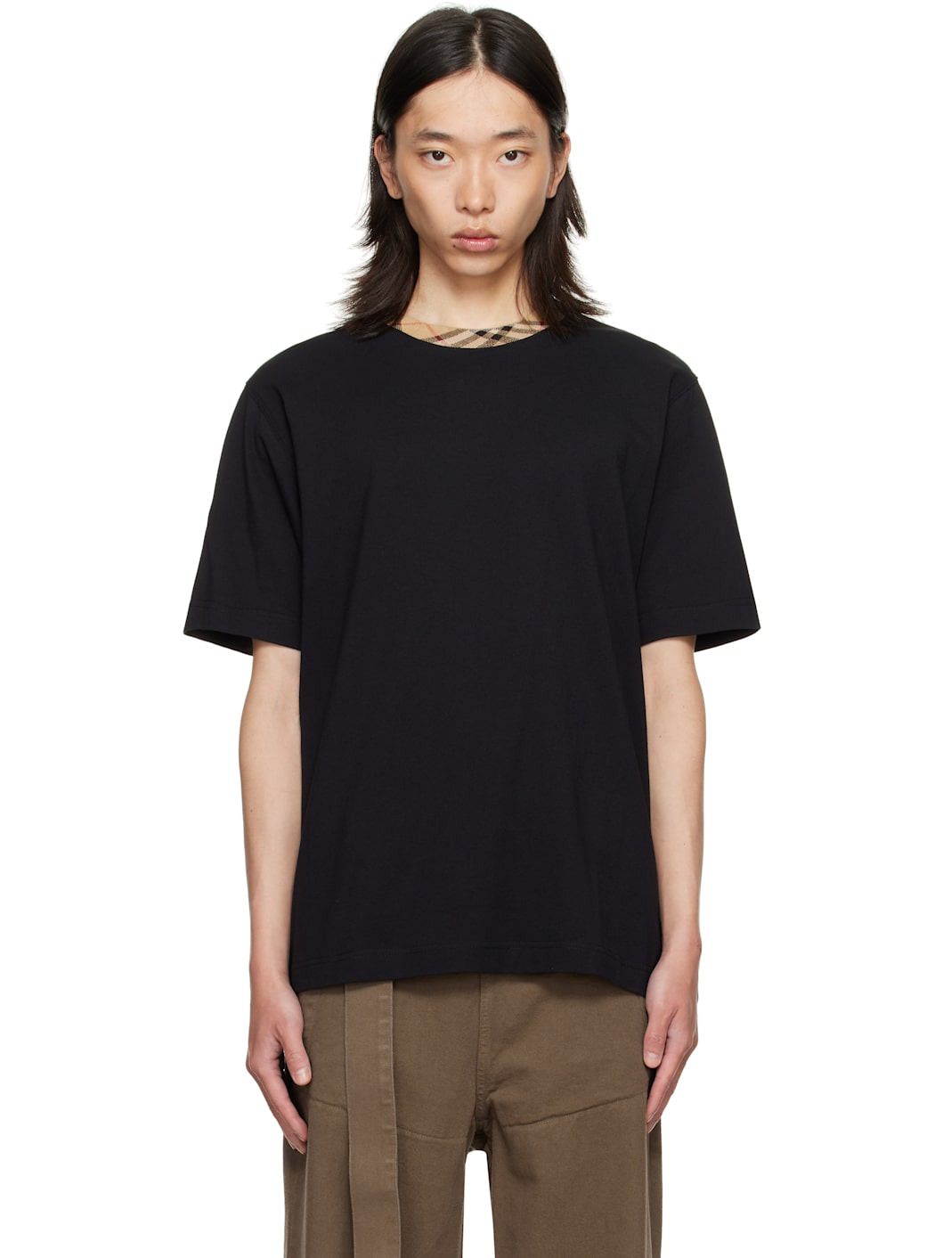 Cotton jersey T-shirt. Check pattern at rib-knit crewneck. Supplier color: Black Body: 100% cotton. Trim: 91% cotton, 7% polyamide, 2% elastane. Made in Portugal 252376M213012