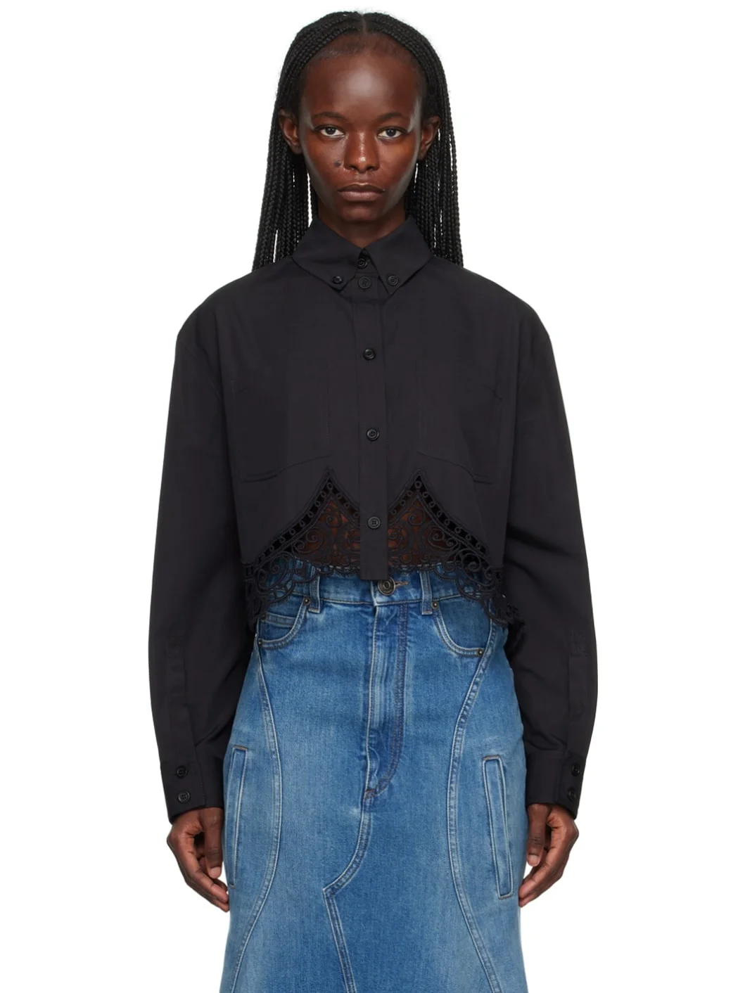 Cotton broadcloth shirt. · Spread collar · Button closure · Patch pockets · Macrame trim at cropped hem · Two-button barrel cuffs · Box pleat at back yoke · Logo-engraved tonal hardware Supplier color: Black Body: 100% cotton. Trim: 84% cotton, 16% polyester. Made in Italy 231376F109011