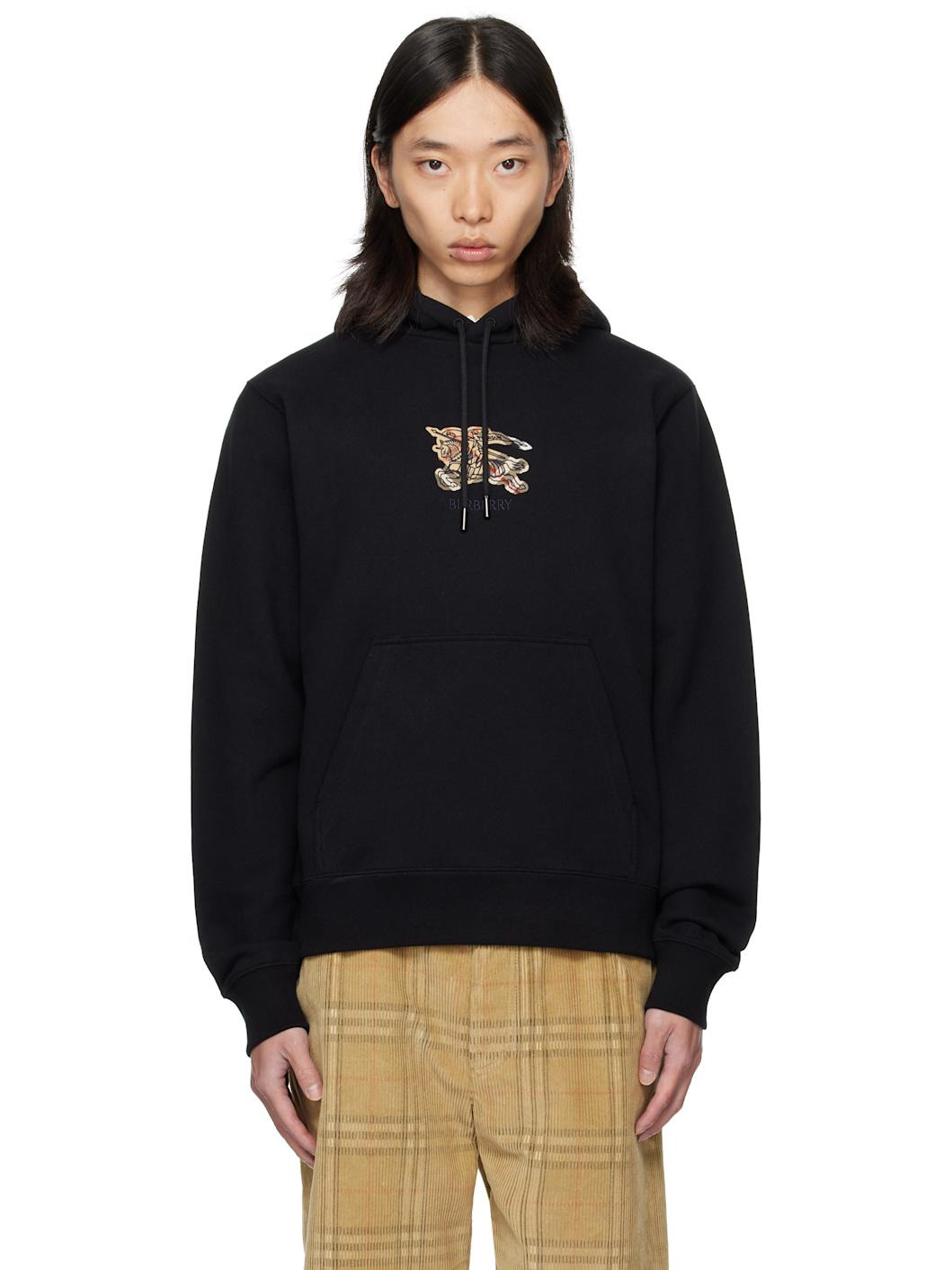 Cotton French terry hoodie. · Drawstring at hood · Check-patterned logo graphic applique at chest · Logo embroidered at front · Kangaroo pocket at waist · Rib-knit hem and cuffs Supplier color: Black Body: 100% cotton. Trim: 99% cotton, 1% elastane. Made in Portugal 252376M202015