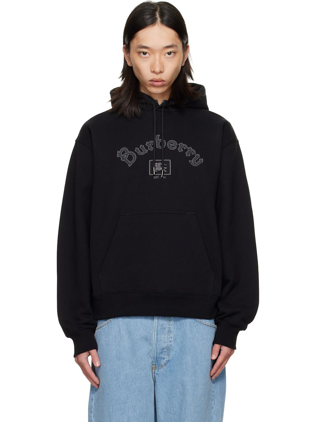 French terry hoodie. · Drawstring at hood · Logo and graphic embroidered at front · Kangaroo pocket · Rib-knit hem and cuffs · Dropped shoulders Supplier color: Black 100% cotton. Made in Portugal 252376M202014