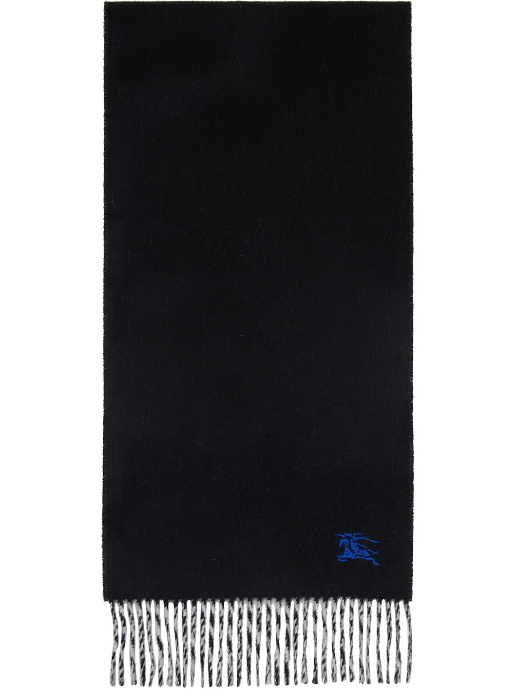 Rectangular cashmere flannel scarf. · Logo graphic embroidered at face · Fringed detailing at ends · L66" x W11.75" Supplier color: Black/Mitten 100% cashmere. Made in United Kingdom 252376F028029