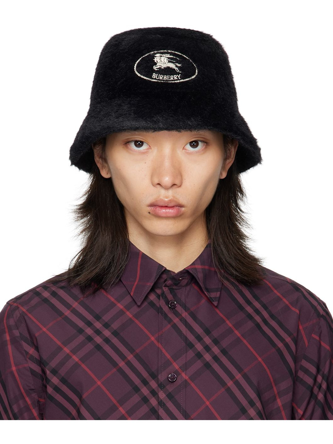 Double-faced faux-fur bucket hat. Logo embroidered at face. Supplier color: Black 100% polyamide. Made in Italy 252376M140007
