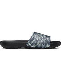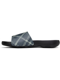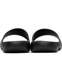 Lightweight rubber pool slides in black and off-white. - Open square toe - Check pattern printed at vamp - Logo embossed at molded rubber footbed - Treaded rubber sole Supplier color: Black/Calico
