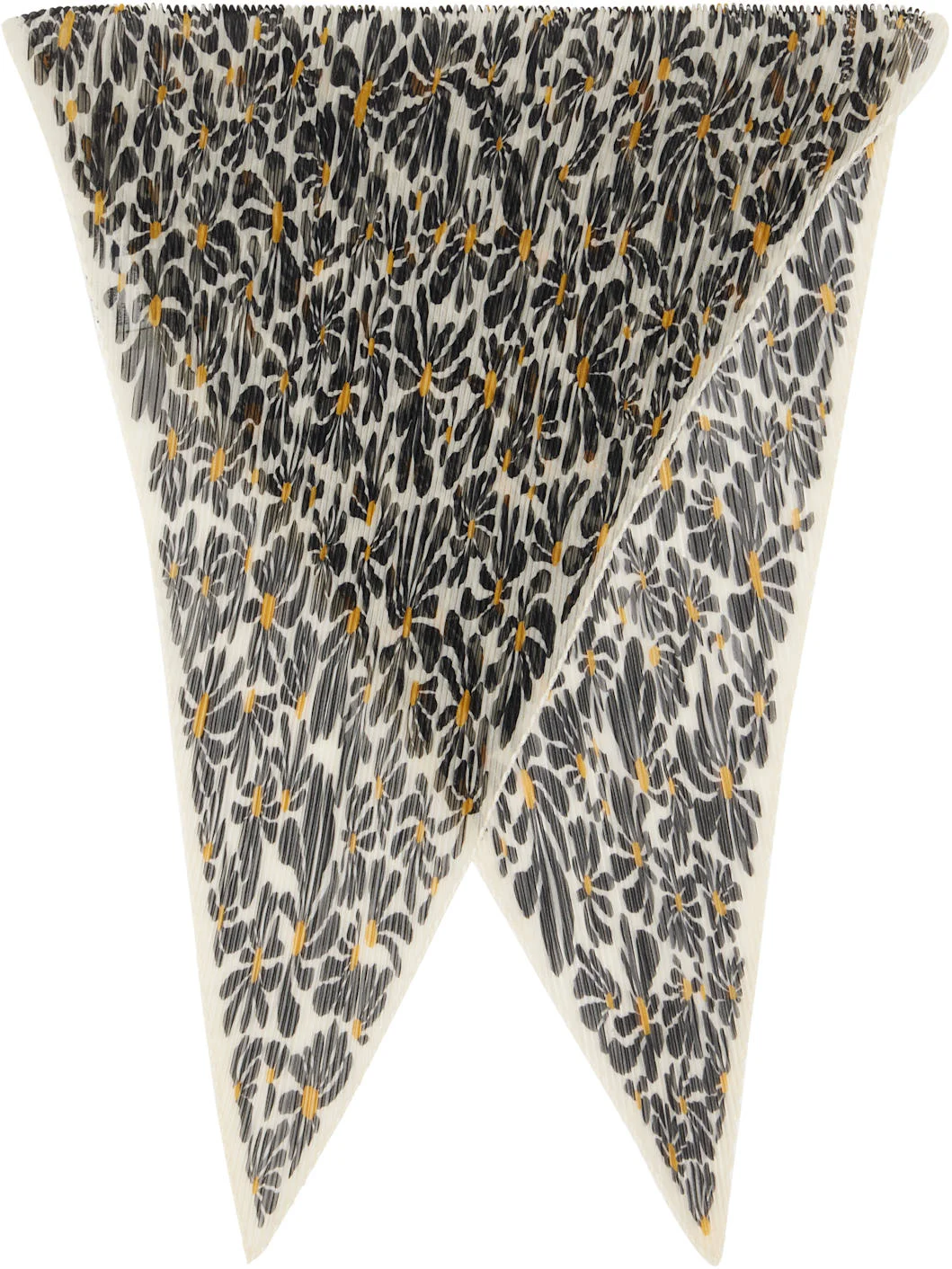 Diamond-shaped garment-pleated silk chiffon scarf. · Floral pattern throughout · Logo flag at end · L32" x W18" Supplier color: Chalk white 100% silk. Made in Italy 261376F029027