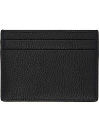 Pebble-grained calfskin card holder. · Logo hardware at face · Four card slots and central note slot · Lambskin interior · Signature check pattern at twill lining · H3" x W4" Supplier color: Black Calfskin. Made in Moldova 252376M163017
