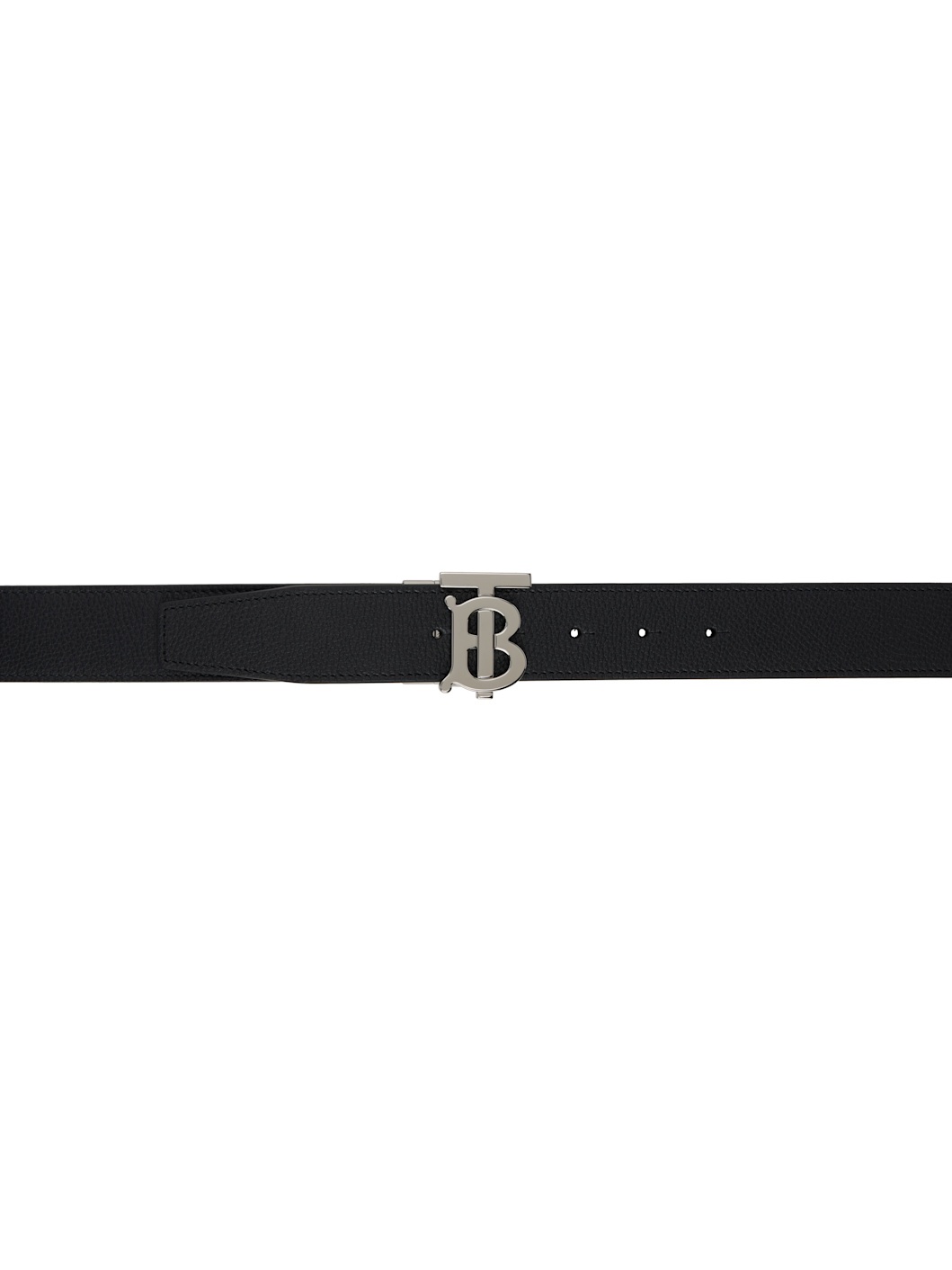 Reversible pebble-grained calfskin belt in black Reverse in tan buffed leather. · Hand-painted edges · Silver-tone logo hardware at post-stud fastening · W1.25" Supplier color: Black/Tan/Silver Calfskin, leather. Made in Italy 251376M131000